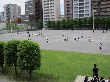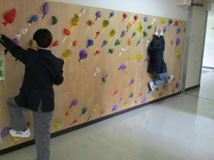 天気も良いので校庭には連日たくさん出て遊んでいます。体育委員会が管理しているボールの貸し出しもあります。体育館棟にある、クライミングも体育委員の管理のもと使うことができます。