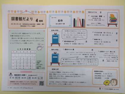図書室より 公開日 2021/04/27 更新日 2021/04/27 学校日記 毎月発行されている図書館だよりには、本についてのいろいろな情報が載っています。また様々なイベントも開催されるなど楽しい空間となっています。 いいね(0)