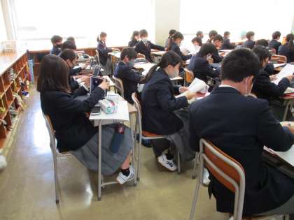 2年生の社会では、ipadを使用した授業を展開していました。ロイロノートを活用した教材のやりとりを確認しながら進めていました。後半にはZoomをつかってオンラインでの配信を行いました。