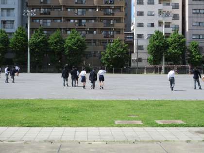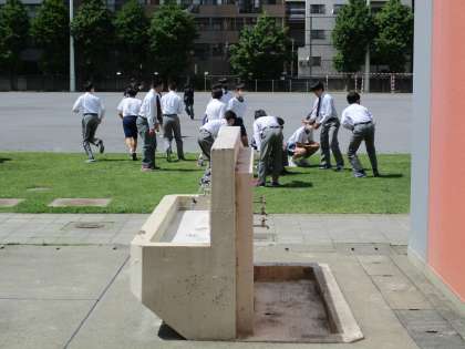 天気も良くなり、校庭に出る生徒も多く、かけ回っていました。