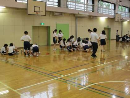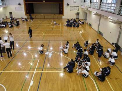 1年生は、体育館でクラスごとに体育大会の役割分担を行っていました。