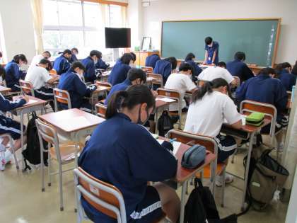 本日の放送による全校朝会で“キャリア・パスポート(学習や生活の見通しをたてて、振り返る=自己評価)”の記入について説明がありました。それを受け早速記入しました。これから毎月記入しポートフォリオをつくっていきます。