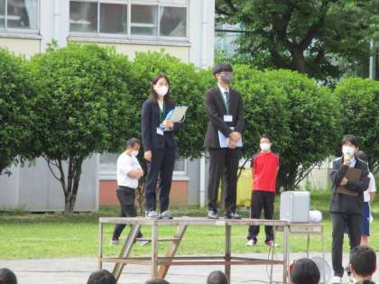 全校練習 公開日 2021/05/10 更新日 2021/05/10 学校日記 1時間目の全校練習の最初に、本日より3週間行われる教育実習の紹介がありました。授業やクラス・学年とともに活動していきます。練習は、体育委員会主導のもと開会式の閉会式の整列、応援席の確認、ラジオ体操を行いました。 いいね(0)