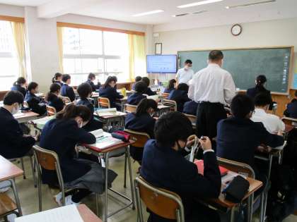 現在英語の授業にはALTの方が授業に入っています。積極的に英語活動にかかわっていただいています。