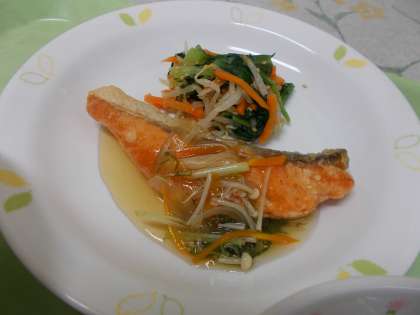 主菜には鮭を使った、野菜のあんかけをつくりました。