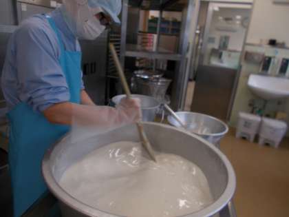 丁寧にういろうになる部分の生地を混ぜるチーフです。