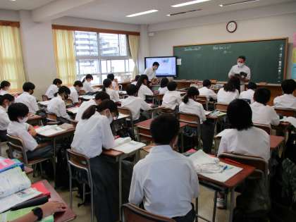 英語の授業から 公開日 2021/07/08 更新日 2021/07/08 学校日記 3年生ではタブレットを活用しての学習が進んでいます。1年生ではALTの発声でリーディングを行っていました。 いいね(0)