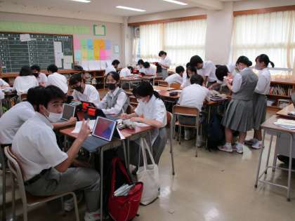 6時間目の総合では 公開日 2021/07/13 更新日 2021/07/13 学校日記 3年生は班行動の続きです。いくつかのパターンで決める予定ですので忙しいです。2年生は各担当ごとの日本語の授業です。A組ではコマーシャルについて考えていました。 いいね(0)