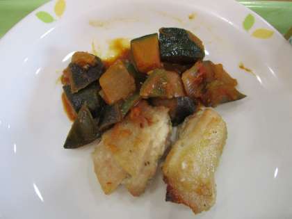 世界の料理フランスからラタトゥイユです。フランスはプロヴァンス地方の郷土料理です。フランス料理でおしゃれなランチタイムに。ミルクパンにチキンのハーブ焼き、コーンと卵のスープ、コーヒー牛乳です。