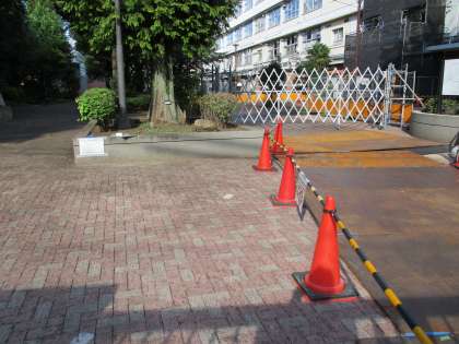 夏休み期間中、耐震工事のため、在校生・保護者のみなさなは体育館入口よりお入りください。保護者のみなさまは入って右手の靴入れをご利用ください。