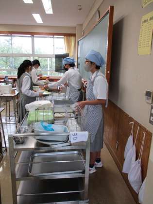 今日は、ポルトガル料理です。バター風味コッペパンとマーマレード、タラのクロケット、キャベツのクロケット、カンジャです。3年生の準備さすがにスムーズです。