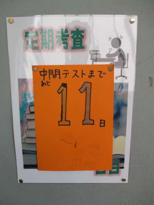 学年の廊下には、中間考査に向けた取り組みとしてテストまでの日数が貼りだされました。