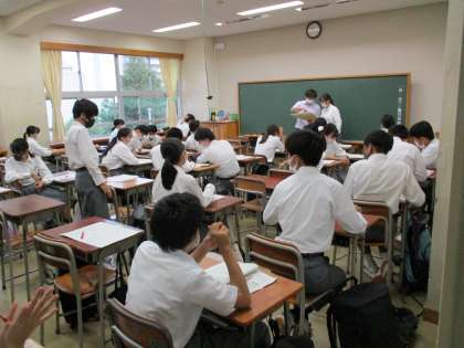 早い教科では、テストの返却が行われています。問題の解き方の解説も行っています。