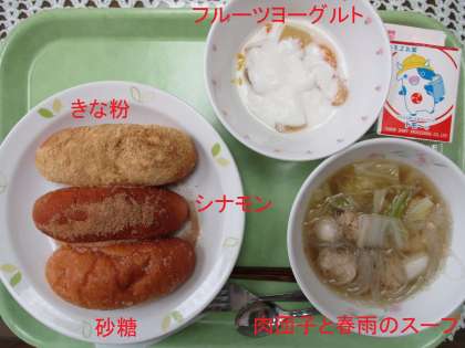 セレクト給食 公開日 2021/10/11 更新日 2021/10/11 学校日記 給食はセレクト揚げパンです。きな粉・シナモン・さとうから2個事前に選んでおきました。何を選んだかしっかり給食委員が伝えていました。ちなみに一番多く選ばれたのは、きな粉だそうです。肉団子と春雨のスープ、フルーツヨーグルトが付きます。 ※写真の3本はあくまでも説明用です。 いいね(0)