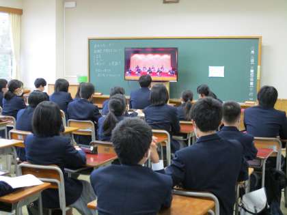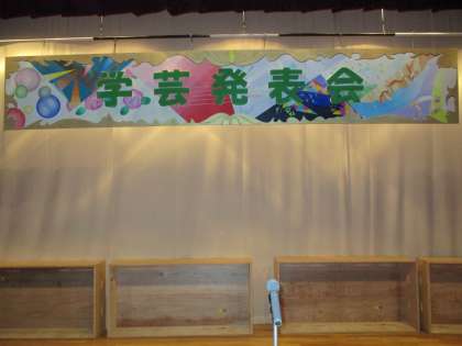 午後の部開始 公開日 2021/10/16 更新日 2021/10/16 学校日記 午後は吹奏楽部と三味線教室のみなさんの演奏を各教室で演奏映像を観ました。その後閉会式に向けて体育館に移動です。体育館ステージ背景の文字は美術部の作品です。ステージに彩を添えます。 いいね(0)