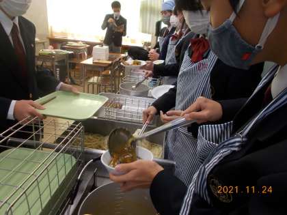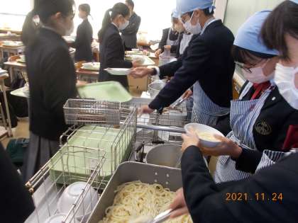 うどんいれてカレーかけて、当番さん連携してやっています。