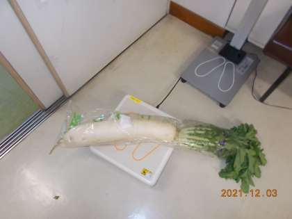 大蔵大根の重さは 公開日 2021/12/06 更新日 2021/12/06 給食 展示していた大根の計量をしました。 重さは4.2kg 長さは1m超えでした。 こんなにりっぱな大蔵大根、何人分の煮物が 出来るでしょうか。 いいね(0)