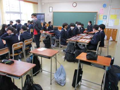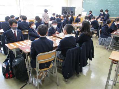 学年として百人一首に取り組んでいます。1回目予選会です。
