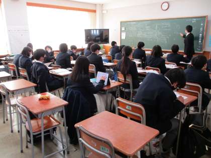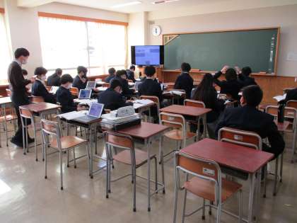 数学の授業では、2クラスを3つに分けた少人数授業に取り組んでいます。