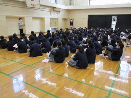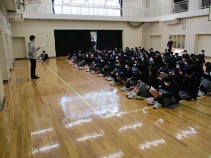 1年生は明日に向けて全体で確認・注意が行われました。今まで色々準備をしてきました。いよいよ本番です。
