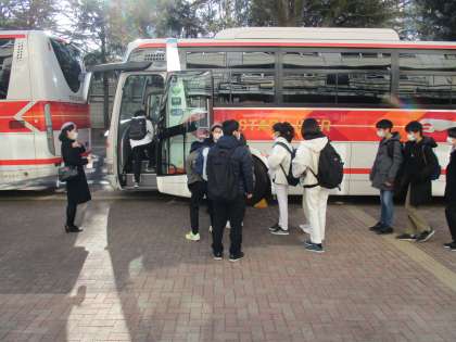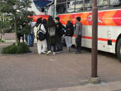 教室で出席確認の後、班ごと方面別にバスに乗車、予定どおりそれぞれの目的地に向かって出発!