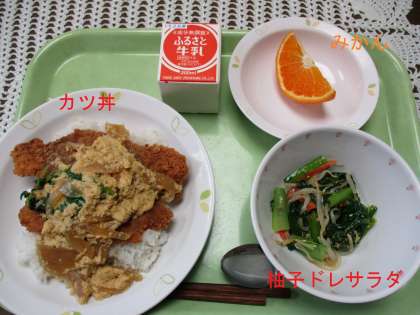 きょうの給食 公開日 2022/02/18 更新日 2022/02/18 学校日記 がんばれ「かつ丼」、3年C組ほくほくごはん(5班)班のゆずドレサラダ、デザートにみかん。3年生応援メニューです。 いいね(0)