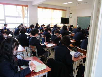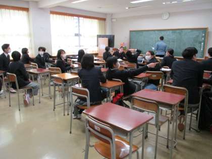 1、2年生はキャリアパスポートを記入していました。3年生最後の席替えに盛り上がっているところも。