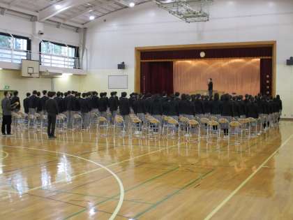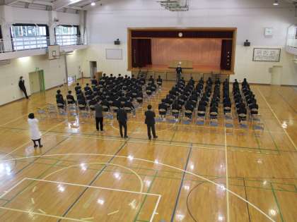 3年生は今日から卒業式の練習に入りました。全体的な流れ、礼儀作法、証書授与の流れなど話がありました。