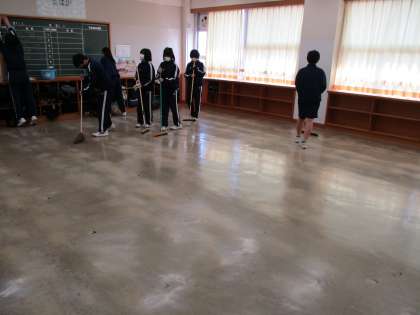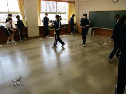 1年間使用した教室をきれいにし、次の学年に引き渡します。みんな率先して取り組んでいます。