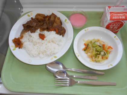 チキンカレーライス 牛乳 ハニーサラダ いちごミルクゼリー
