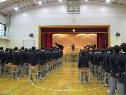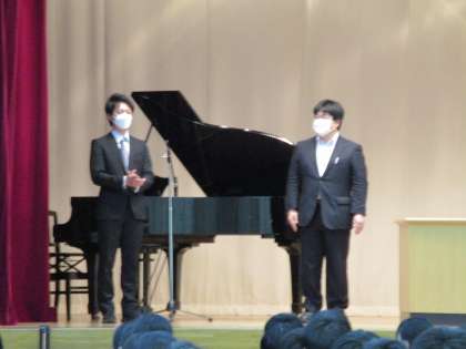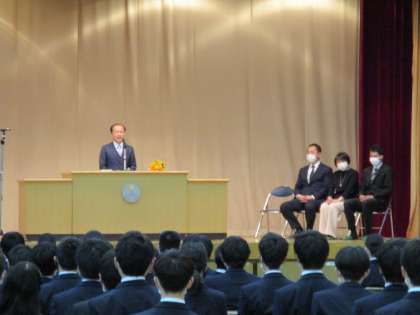離任式 公開日 2022/04/22 更新日 2022/04/22 学校日記 昨年度末で離任された先生方4名の方がいらっしゃいました。代表生徒が感謝の言葉を伝ました。そのあとそれぞの先生方から暖かい言葉をいただきました。最後に新しく着任された先生方の紹介もありました。 いいね(0)