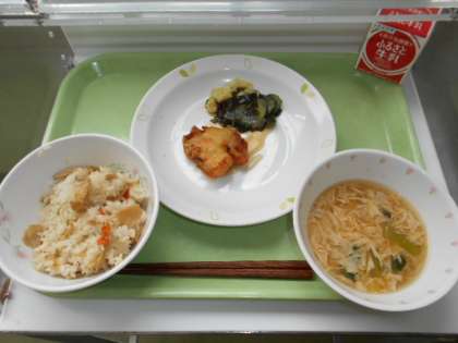 たけのこごはん 牛乳 かきあげ わかめの酢の物 かきたま汁