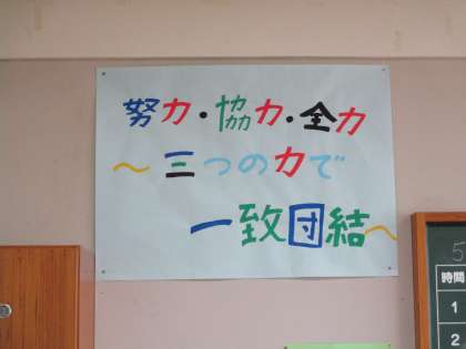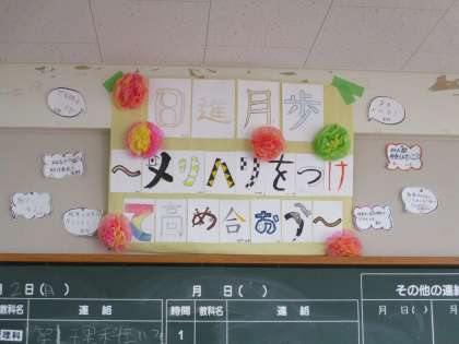 各クラスのクラス目標が掲示されています。個性が光ります。