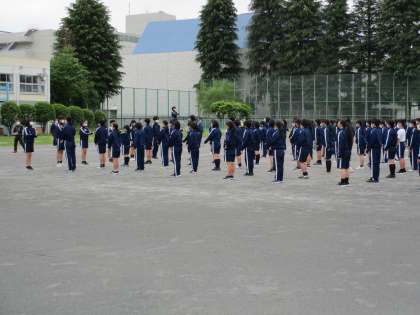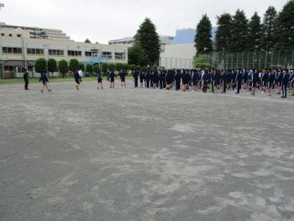 全校朝会で校長先生の話、教育実習生の紹介に続き1回目の全校練習が行われました。