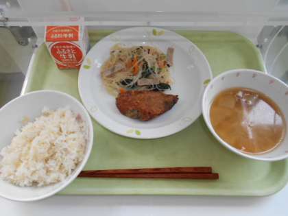 雑穀ごはん 牛乳 かつおの竜田揚げ 小松菜サラダ 呉汁