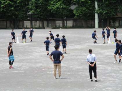 世田谷区スポーツ振興財団によるスポーツ教室(陸上競技)を実施しました。トップアスリートを迎えての授業は、専門的な指導をしていただきました。