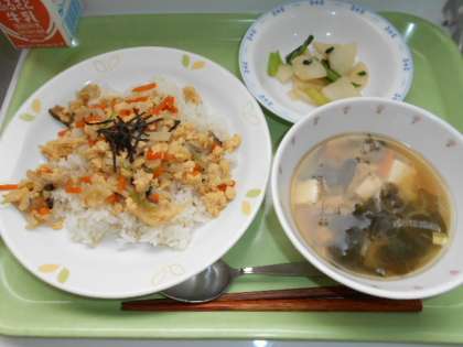 親子丼 牛乳 かぶのレモンじょうゆかけ みそ汁
