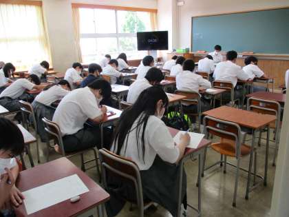 1年生は学年集会でこれからの話、2年生は、小テストに取り組んでいました。大きな行事が終わり生活を切り替えていきましょう。
