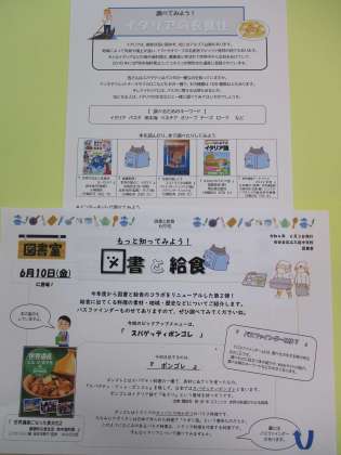 図書室とのコラボ給食 公開日 2022/06/10 更新日 2022/06/10 学校日記 きょうの献立の、「スパゲティボンゴレ(=カンパニア州ナポリのパスタ料理)」にちなんでイタリアについての紹介です。 いいね(0)