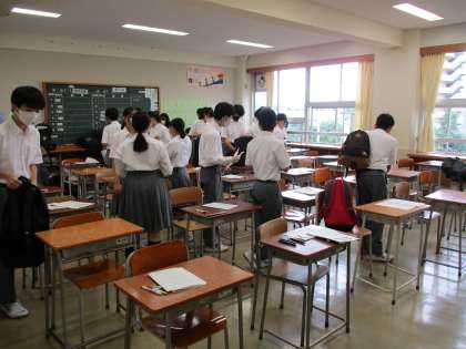 今日でテストは終了。最後のテストが回収され、安堵の表情がみられます。