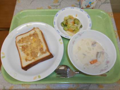 ツナトースト 牛乳 クリームシチュー フレンチサラダ