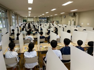 夕食の時間です。一人一人仕切られています。