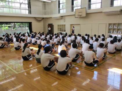 学芸発表会実行員会からの取り組む姿勢についての話や修学旅行実行委員長からスローガンの等の話がありました。