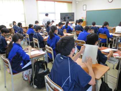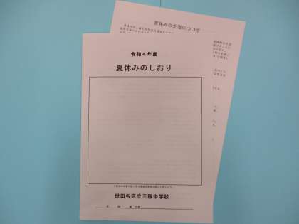 1年生は夏休みのしおりが配られ説明がありました。あと1週間で夏休みです。