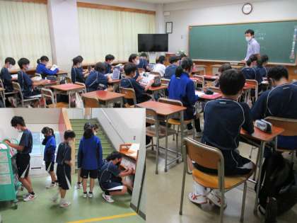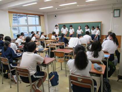 各学年でのとりくみ 公開日 2022/07/15 更新日 2022/07/15 学校日記 各学年様々な取り組みをしています。3年生は来週行われる学年レクの説明を、2年生は席替えで盛楽しそうな雰囲気が伝わってきます、1年生はタブレットや冊子を活用し職業調べを行っています。 いいね(0)