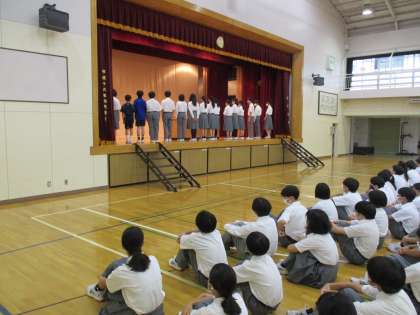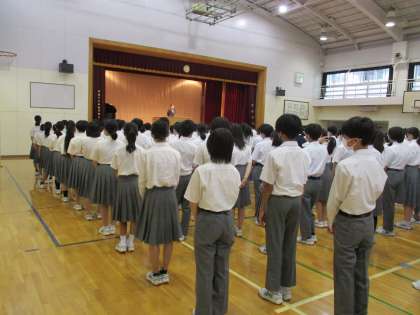 始業式では、校長先生の話に続き、表彰が行われました。また、その後学年集会等も行われました。