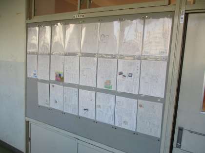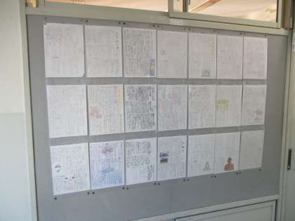 廊下や教室に貼ってある事前学習は、3年生の修学旅行への思いが伝わってきます。