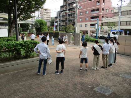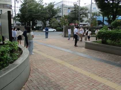 7:50より立候補者、応援演説者によるあいさつ活動を行っています。