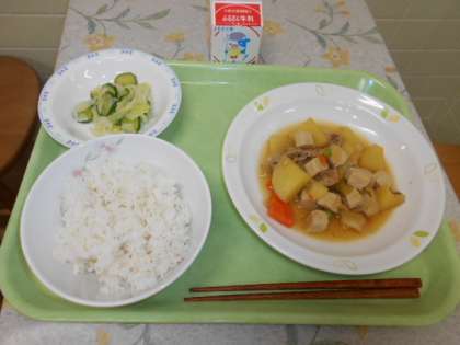 麦ごはん 牛乳 肉じゃがうま煮 ひとしお野菜