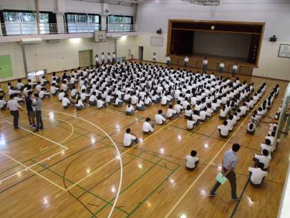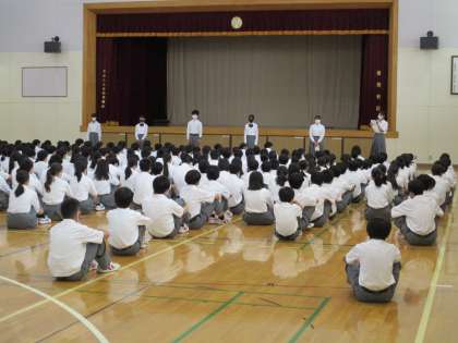 今回の生徒会朝会は、現役員と新役員のあいさつがそれぞれありました。1年間お疲れ様でした、そしてよろしくお願いします。